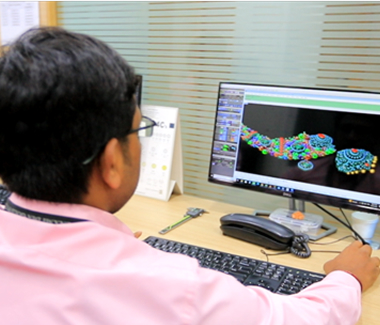 Once a design is conceptualized in the mind of the jewellery designer, it is drawn on paper and then into the system.