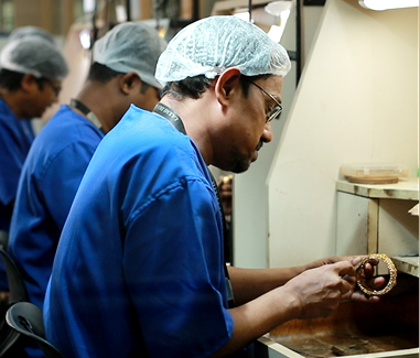 This is the final polish of the piece of jewellery. In polishing, the idea is to add shine to the entire piece of jewellery.
